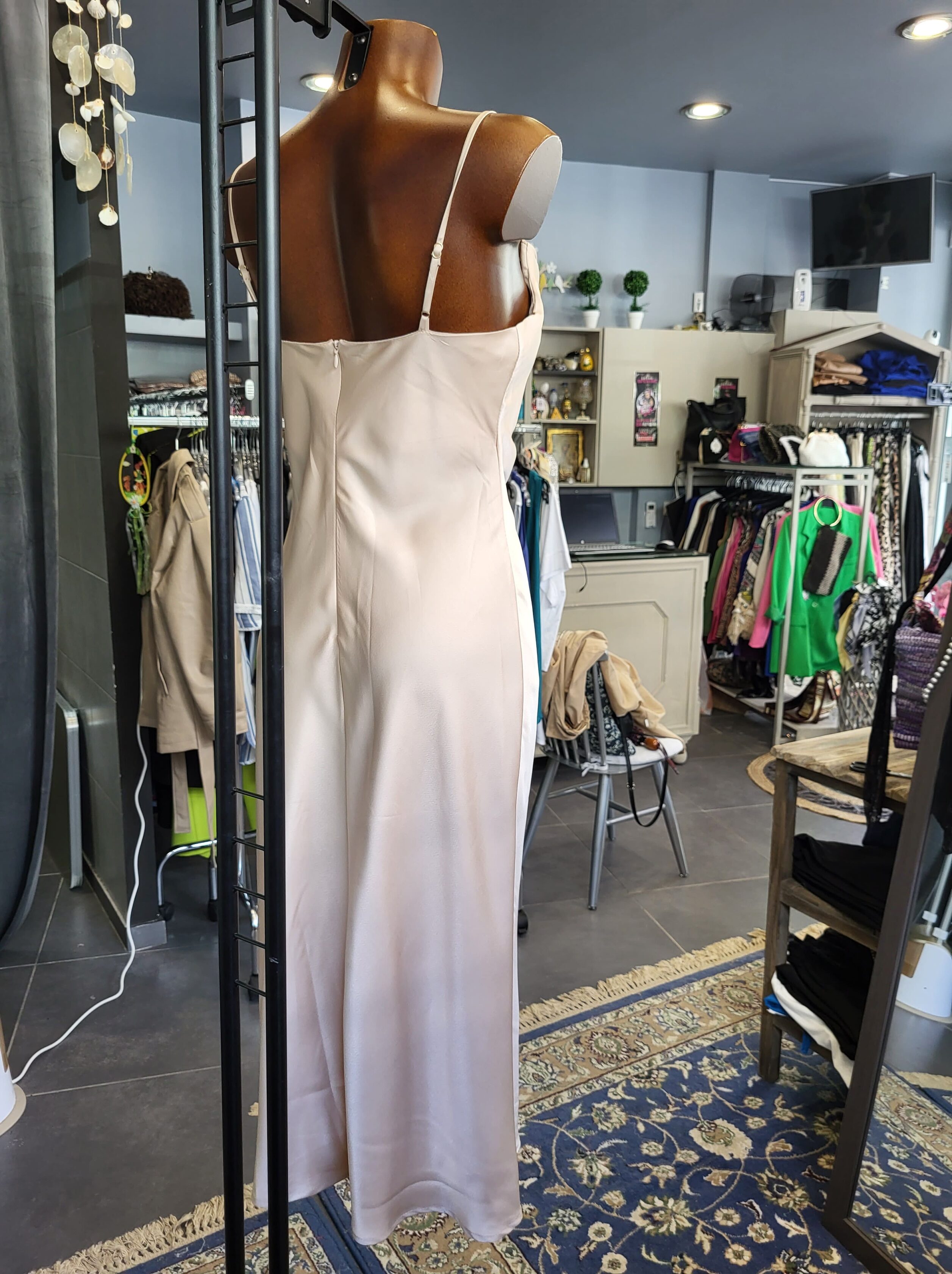 Αυτό το φόρεμα αποπνέει διαχρονική κομψότητα με την κλασική παλέτα χρωμάτων και τον κομψό σχεδιασμό του, καθιστώντας το μια ευέλικτη και σικ επιλογή για κάθε περίσταση.