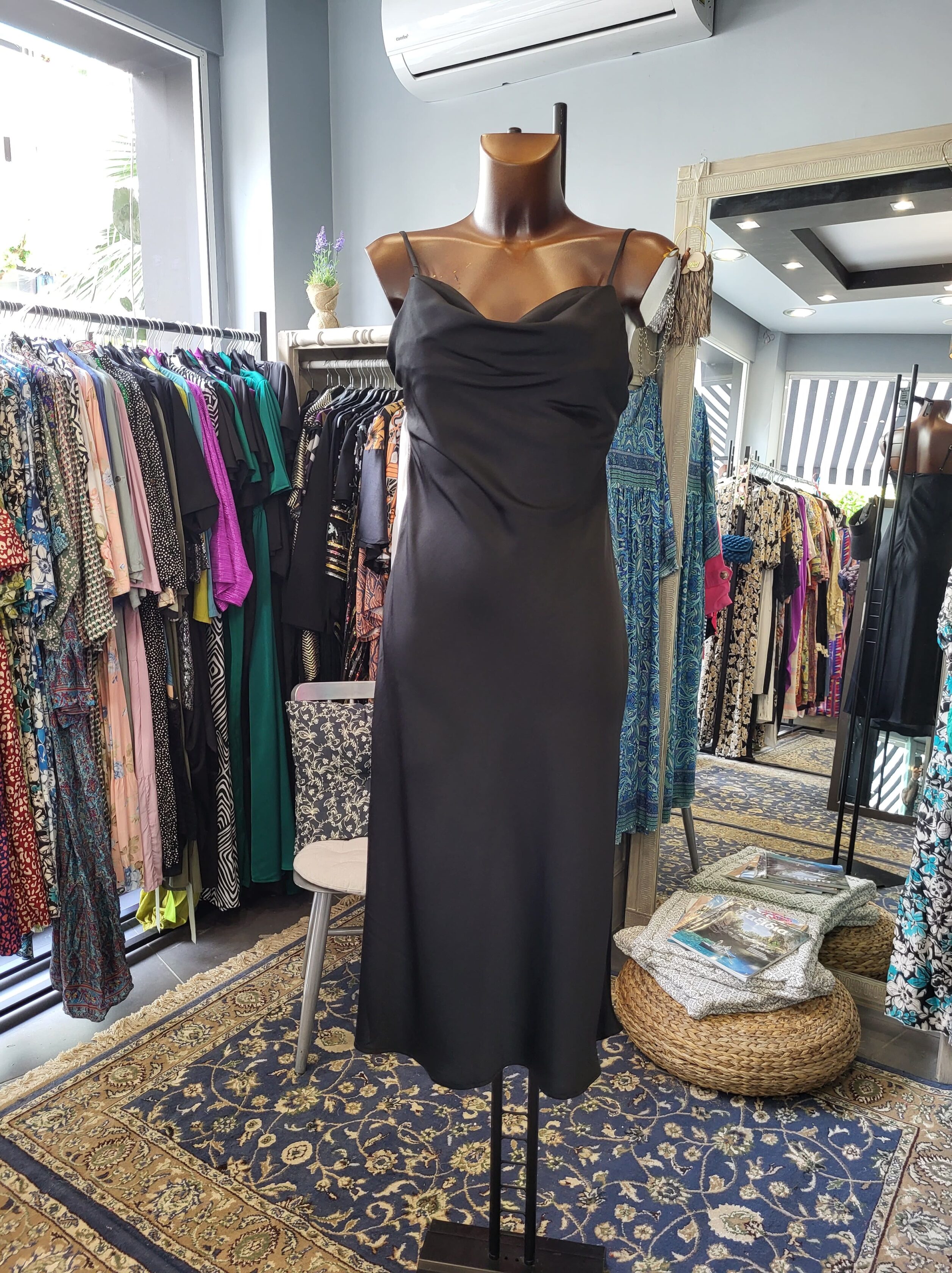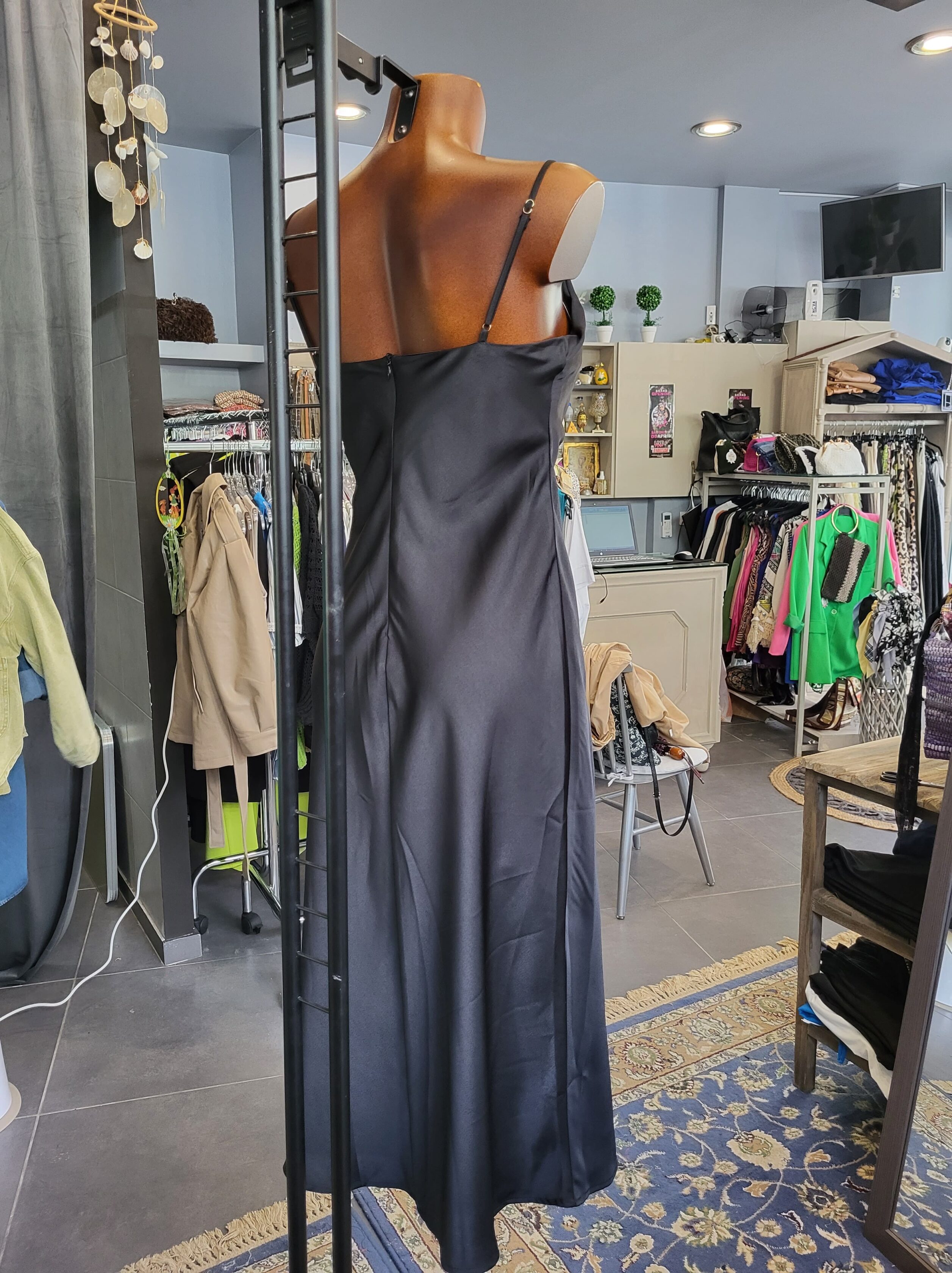 Αυτό το μαύρο φόρεμα αποπνέει διαχρονική κομψότητα με την κλασική παλέτα χρωμάτων και τον κομψό σχεδιασμό του, καθιστώντας το μια ευέλικτη και σικ επιλογή για κάθε περίσταση.